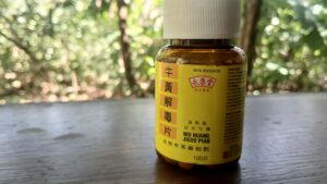 A strong OTC pill useful for health of the inner ear, mouth, teeth, throat and salivary glands as well as the gastrointestinal and respiratory system. It is only for acute situations and long term use needs supervision from a DTCM or TCMP. Used in situations involving sore throat, mouth ulcers, cough, cold sores, sore gums, watery or itchy eyes and constipation. Contraindicated for pregnancy.